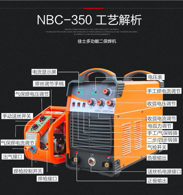 佳士焊機閉環反饋控制,輸出電壓穩定,抗電網電壓波動能力強,焊接電弧穩定,焊接飛濺少,成型美觀,焊接效率高2T/4T功能,滿足長時間焊接要求收弧電壓、收弧電流調節,適合不同的焊接需求手焊,氣保焊兩用。